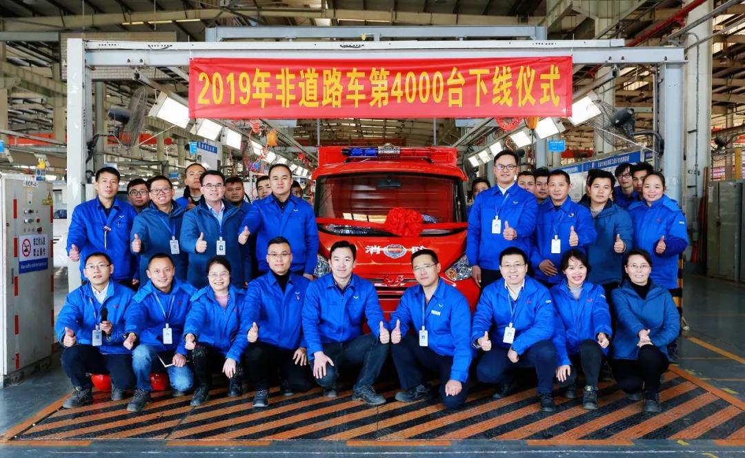 12月27日,在專用車廠總裝車間主裝配線舉行2019年非道路車第4000臺下線儀式,產(chǎn)、供、銷團(tuán)隊(duì)共同見證這個激動人心的時刻。