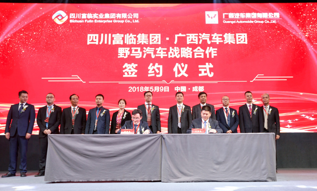 共創(chuàng)美好,未來無限。5月9日,廣西汽車集團(tuán)與四川富臨集團(tuán)在成都簽署野馬汽車戰(zhàn)略合作意向書。四川富臨集團(tuán)與廣西汽車集團(tuán)將在“野馬汽車”平臺基礎(chǔ)上開展戰(zhàn)略合作。在四川富臨實(shí)業(yè)集團(tuán)有限公司總經(jīng)理李億中先生和廣西汽車集團(tuán)有限公司總裁袁智軍先生共同見證下,由富臨集團(tuán)董事四川野馬汽車股份有限公司總經(jīng)理譚建偉先生與廣西汽車集團(tuán)有限公司總裁助理柳州五菱汽車工業(yè)公司副總經(jīng)理李薇旻先生代表兩家公司簽署協(xié)議。